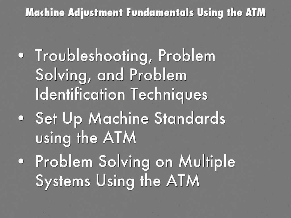 • Machine Adjustment Fundamentals using the ATM