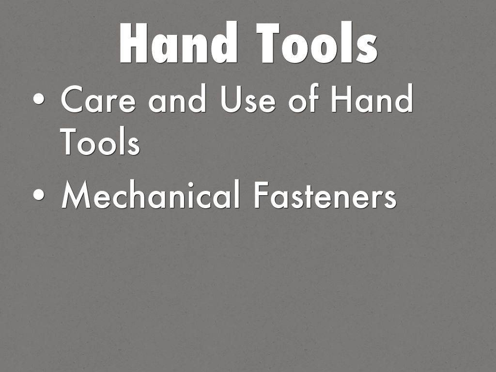 • Care and Use of Hand Tools