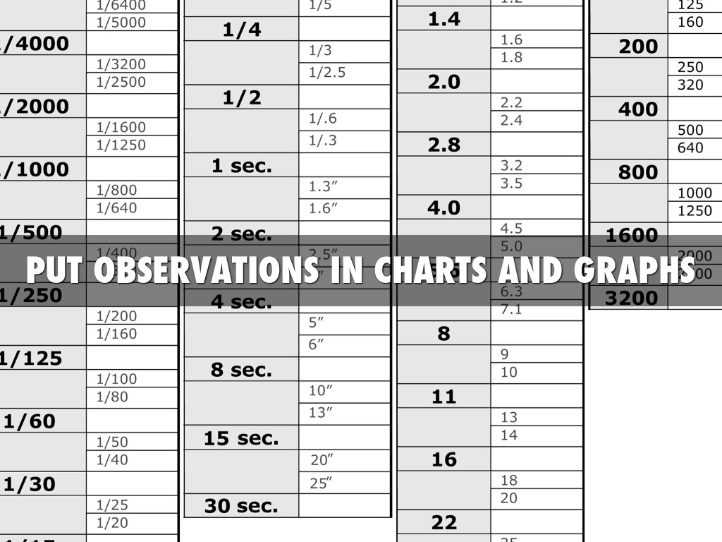PUT OBSERVATIONS IN CHARTS AND GRAPHS