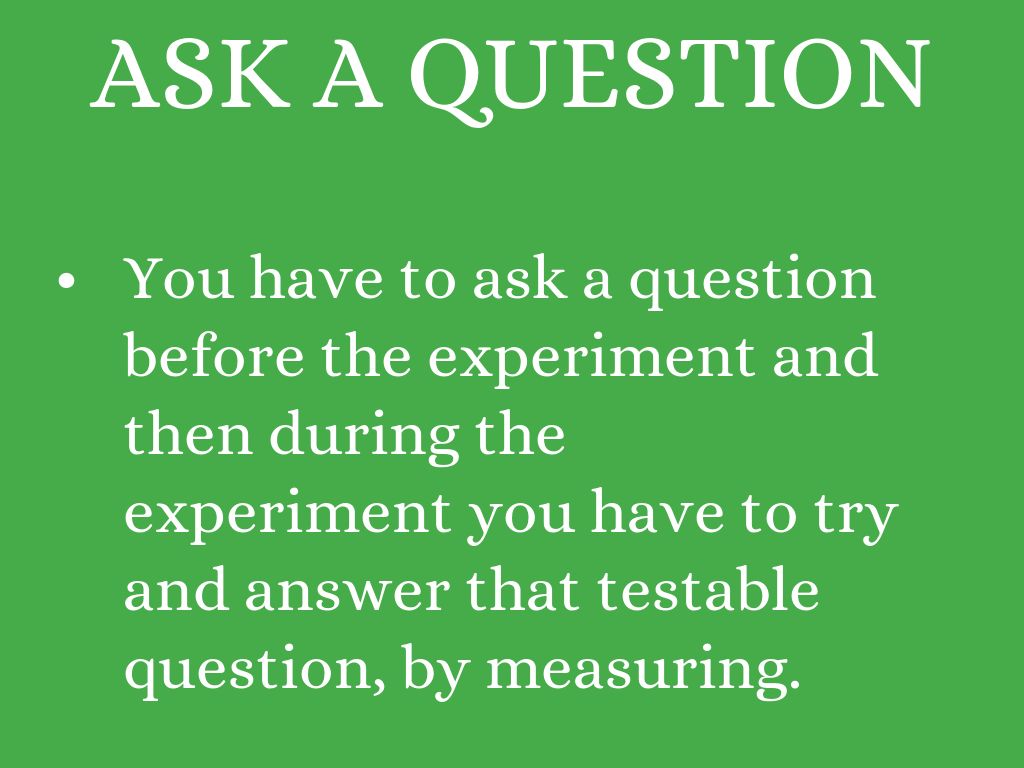 You have to ask a question before the experiment and then during the experiment you have to try and answer that testable question, by measuring.