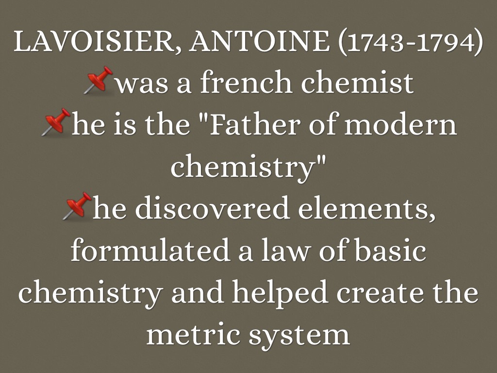 📌he discovered elements, formulated a law of basic chemistry and helped create the metric system