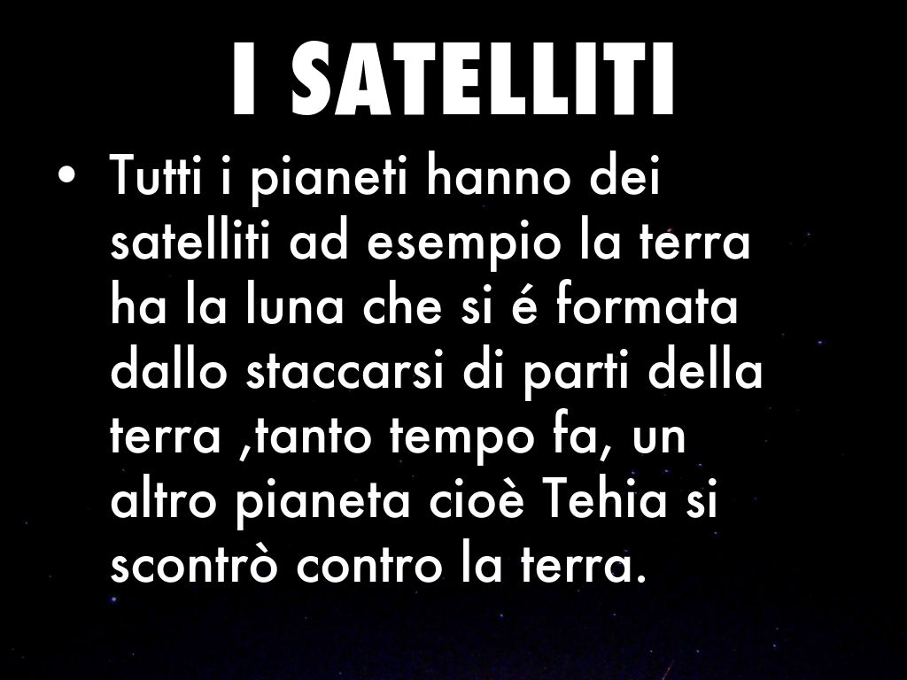 Tutti i pianeti hanno dei satelliti ad esempio la terra ha la luna che si é formata dallo staccarsi di parti della terra ,tanto tempo fa, un altro pianeta cioè Tehia si scontrò contro la terra.
