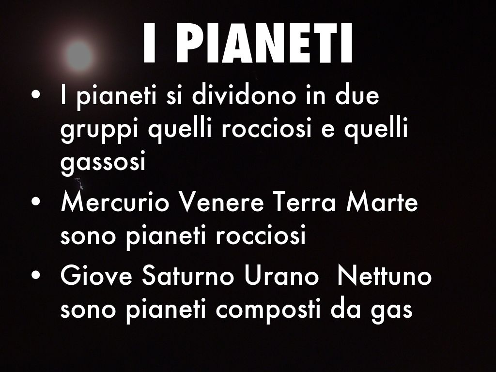 I pianeti si dividono in due gruppi quelli rocciosi e quelli gassosi