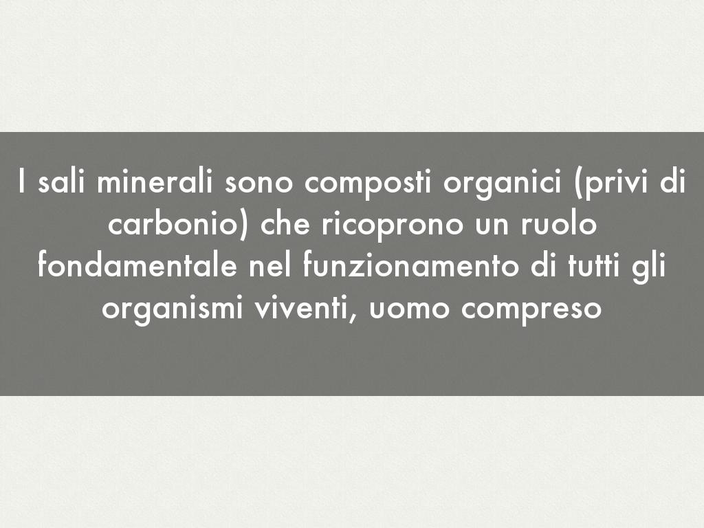 I sali minerali sono composti organici (privi di carbonio) che ricoprono un ruolo fondamentale nel funzionamento di tutti gli organismi viventi, uomo compreso