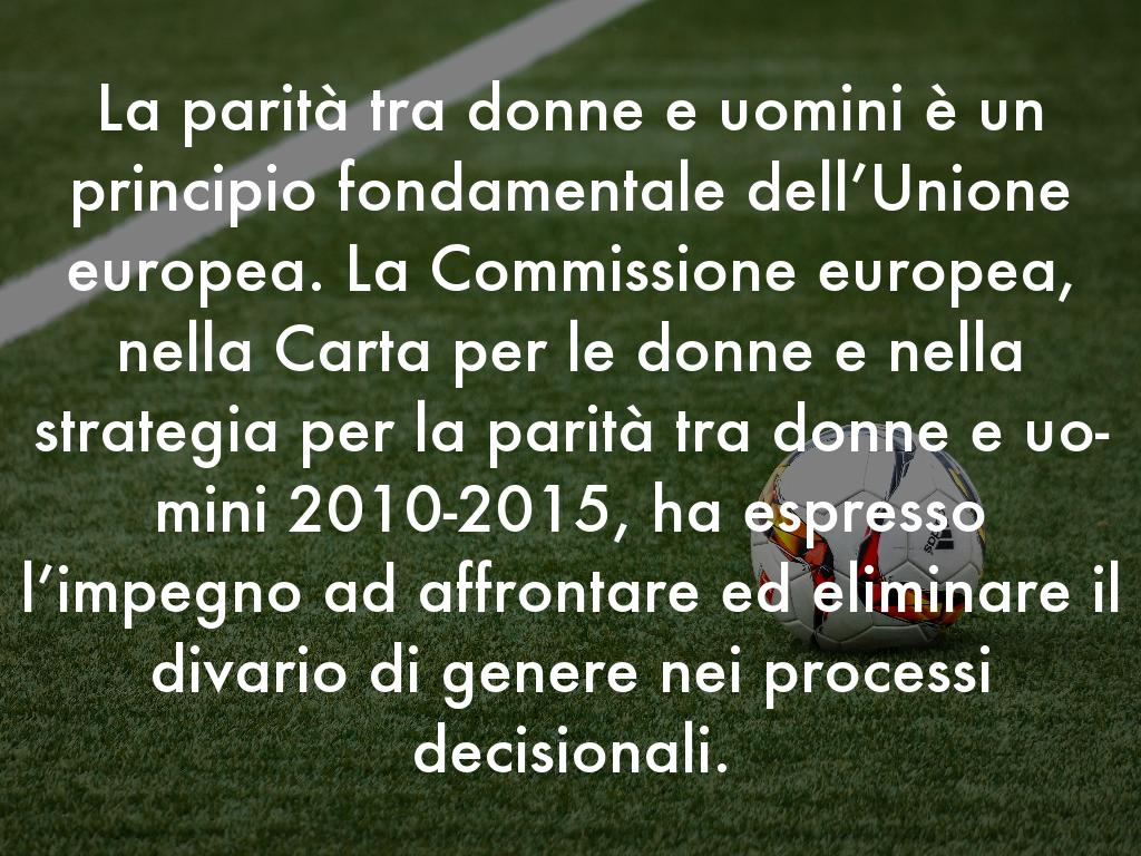 La parità tra donne e uomini è un principio fondamentale dell’Unione europea. La Commissione europea, nella Carta per le donne e nella strategia per la parità tra donne e uo- mini 2010-2015, ha espresso l’impegno ad affrontare ed eliminare il divario di genere nei processi decisionali.