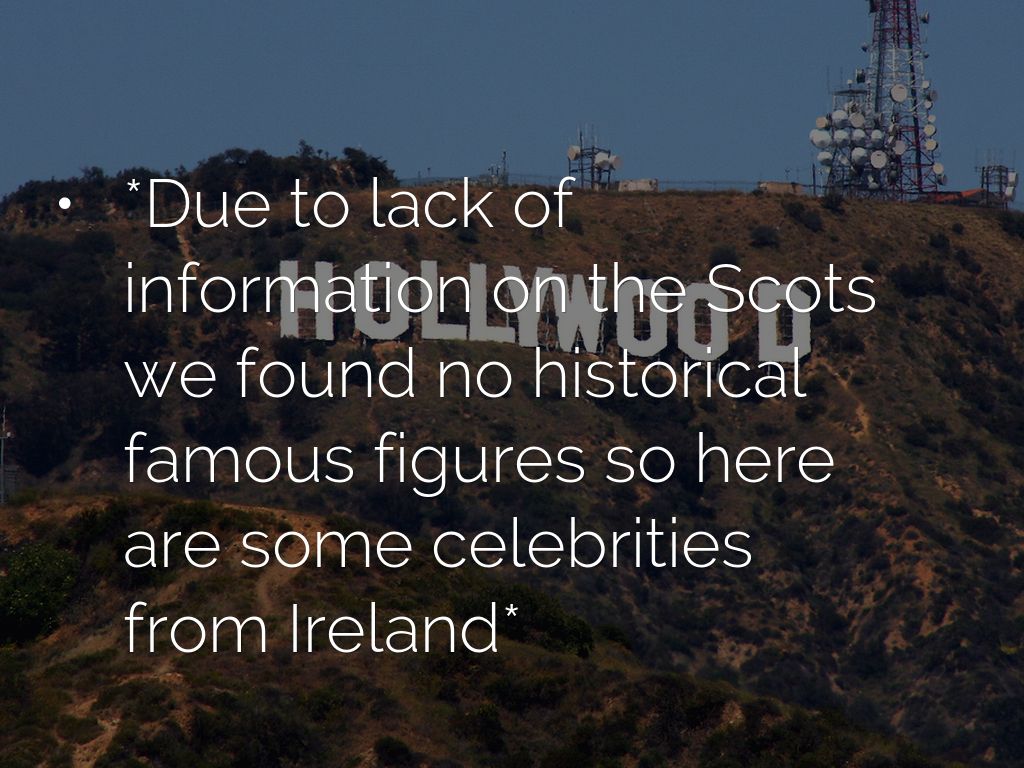 *Due to lack of information on the Scots we found no historical famous figures so here are some celebrities from Ireland*