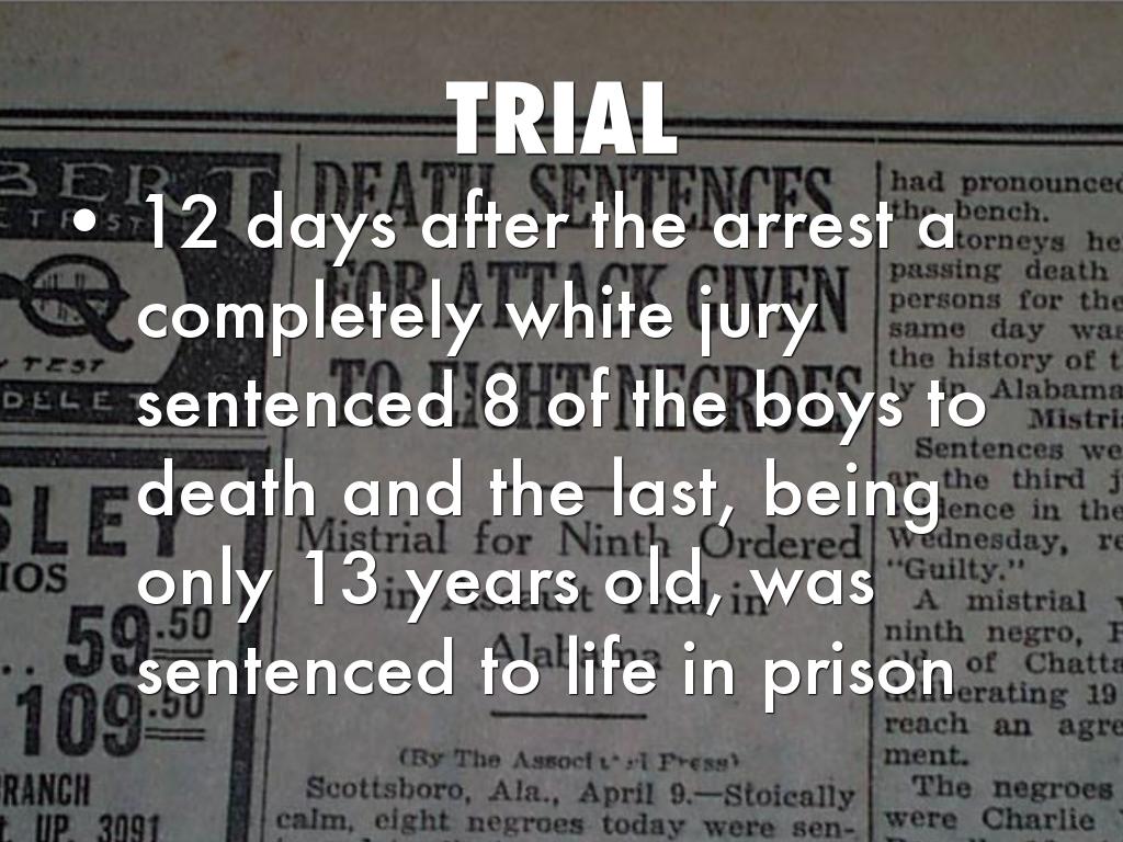 - 12 days after the arrest a completely white jury sentenced 8 of the boys to death and the last, being only 13 years old, was sentenced to life in prison