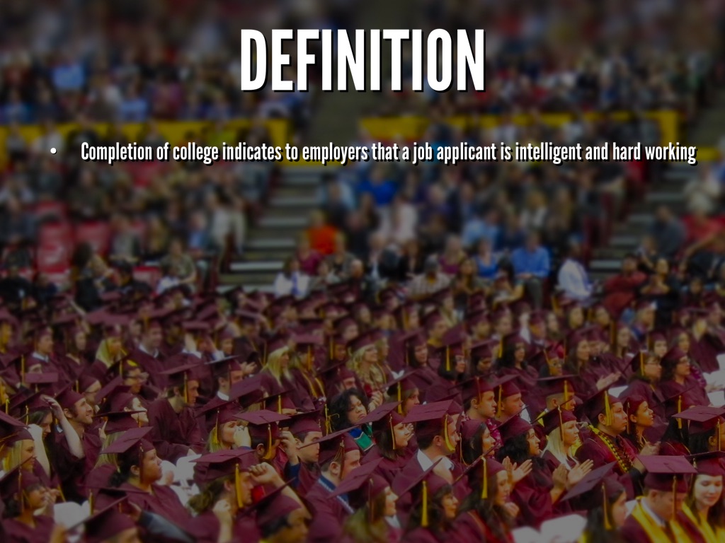 Completion of college indicates to employers that a job applicant is intelligent and hard working