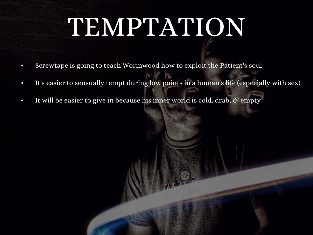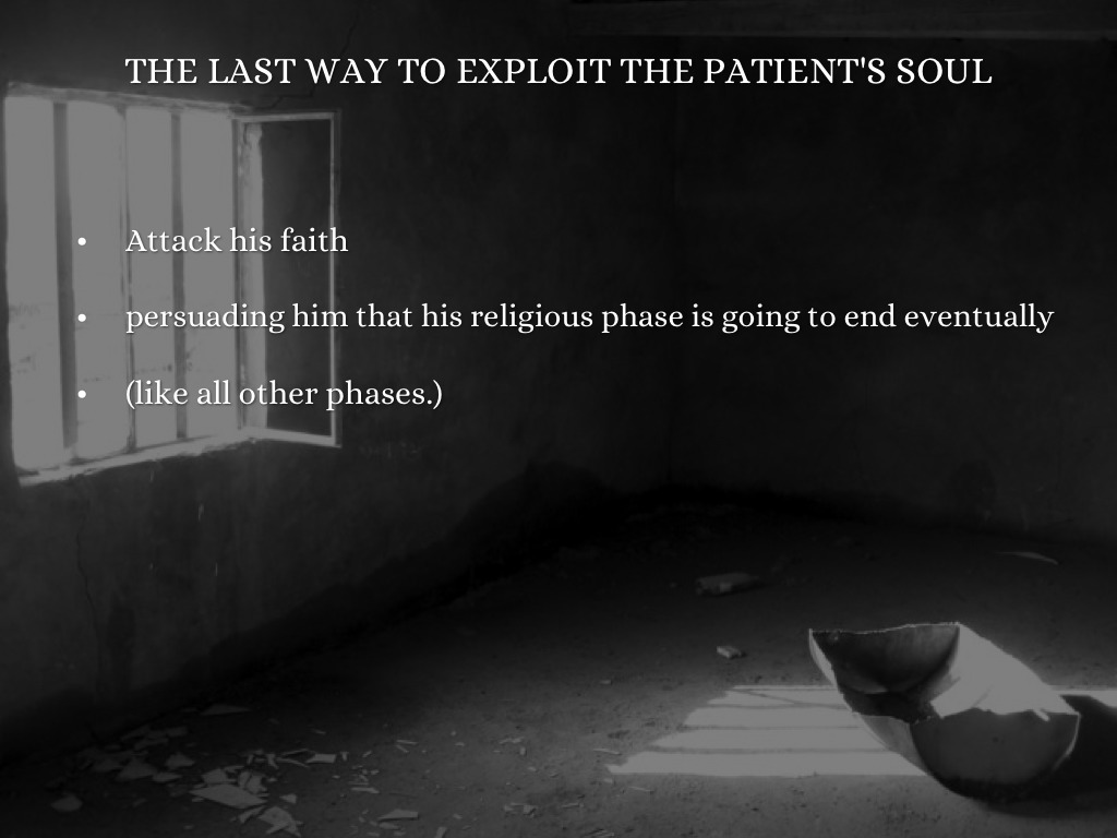 • Screwtape is going to teach Wormwood how to exploit the Patient's soul