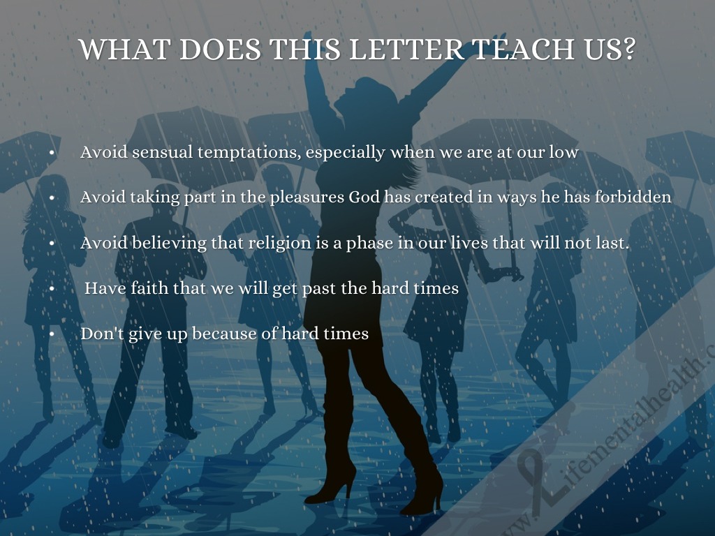 • Avoid taking part in the pleasures God has created in ways he has forbidden