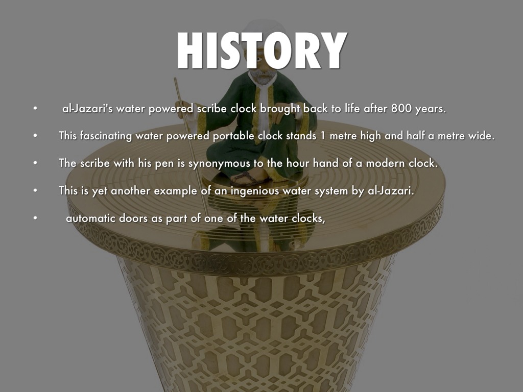 al-Jazari's water powered scribe clock brought back to life after 800 years.