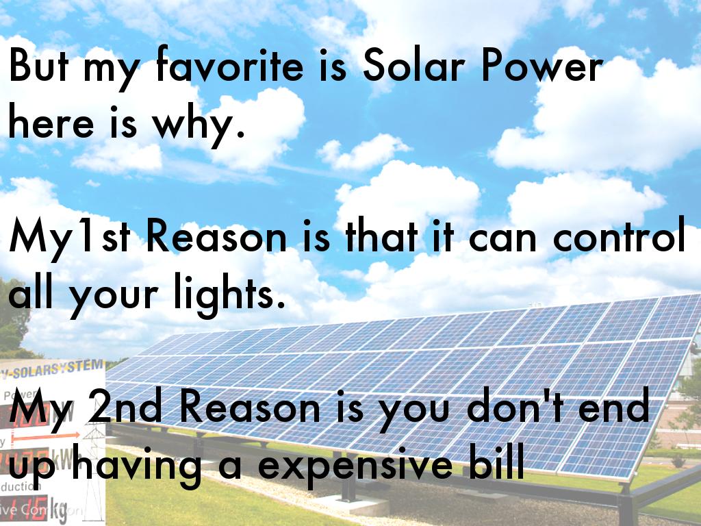 But my favorite is Solar Power here is why.