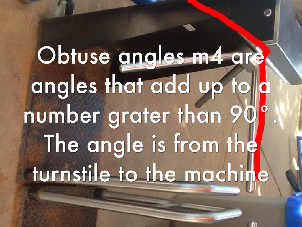 Obtuse angles m4 are angles that add up to a number grater than 90°. The angle is from the turnstile to the machine