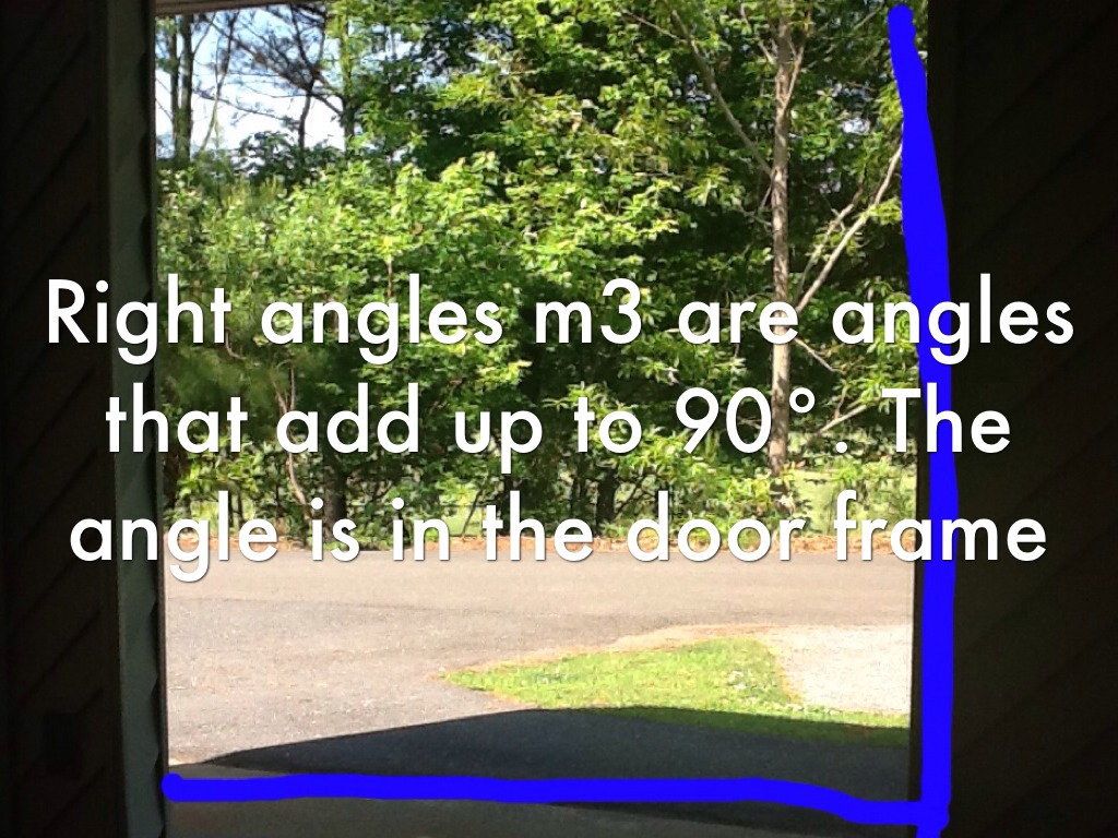 Right angles m3 are angles that add up to 90°. The angle is in the door frame