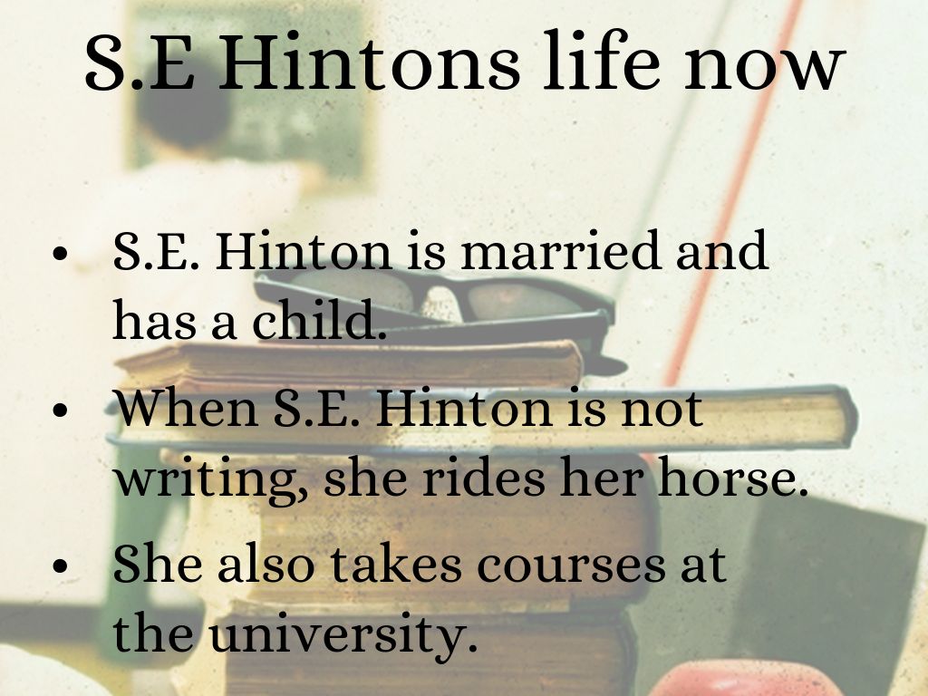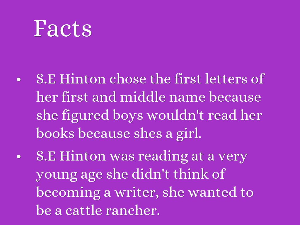 S.E Hinton was reading at a very young age she didn't think of becoming a writer, she wanted to be a cattle rancher.
