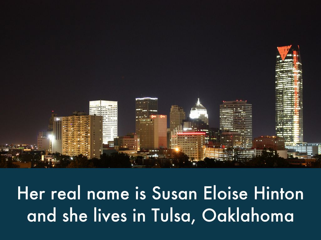 Her real name is Susan Eloise Hinton and she lives in Tulsa, Oaklahoma