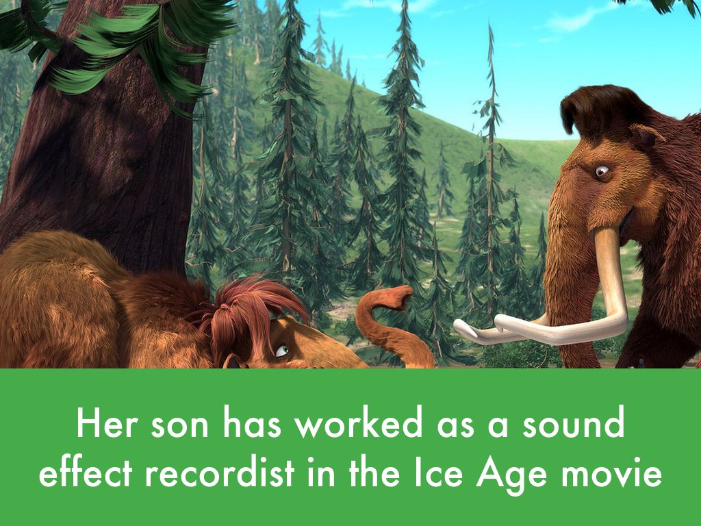 Her son has worked as a sound effect recordist in the Ice Age movie