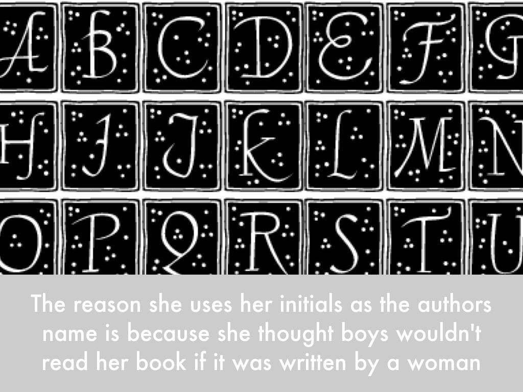 The reason she uses her initials as the authors name is because she thought boys wouldn't read her book if it was written by a woman
