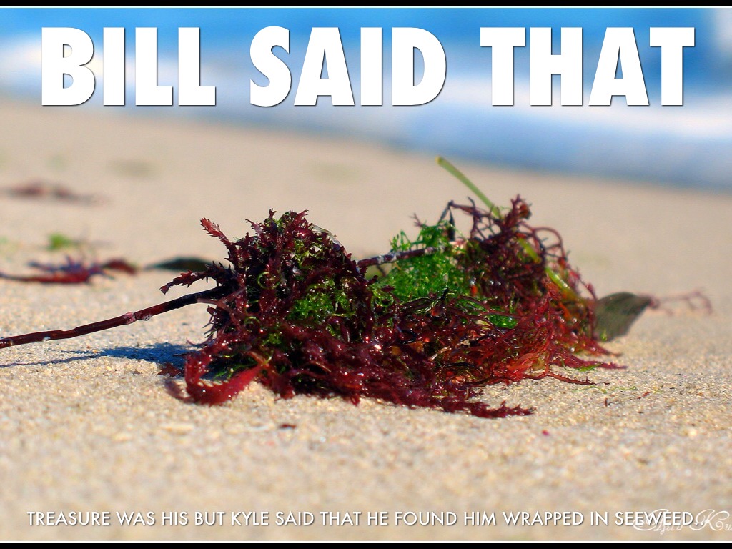 TREASURE WAS HIS BUT KYLE SAID THAT HE FOUND HIM WRAPPED IN SEEWEED..