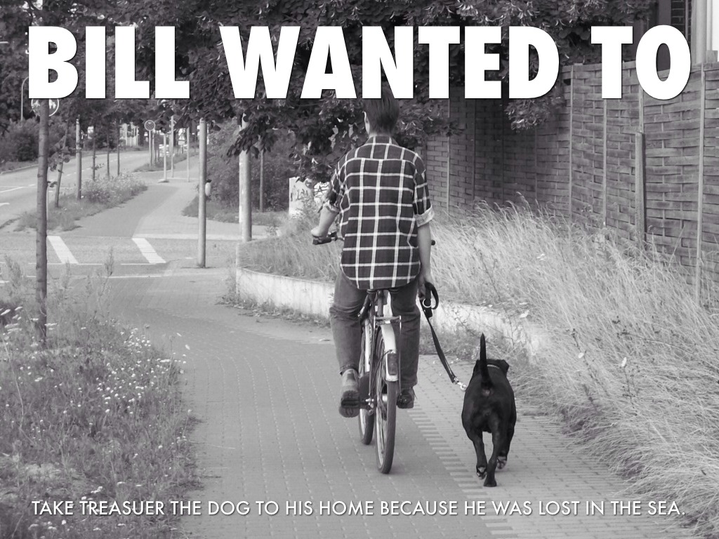 TAKE TREASUER THE DOG TO HIS HOME BECAUSE HE WAS LOST IN THE SEA.