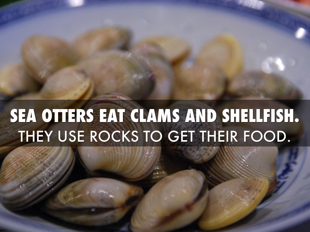 SEA OTTERS EAT CLAMS AND SHELLFISH.