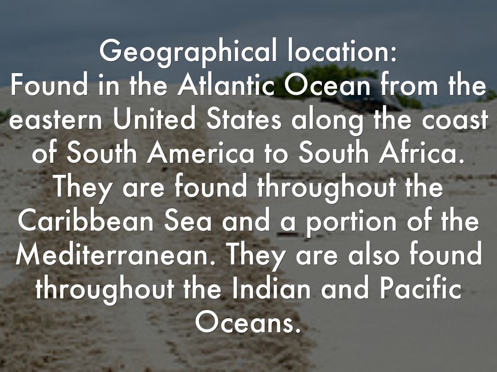 Geographical location: Found in the Atlantic Ocean from the eastern United States along the coast of South America to South Africa. They are found throughout the Caribbean Sea and a portion of the Mediterranean. They are also found throughout the Indian and Pacific Oceans.