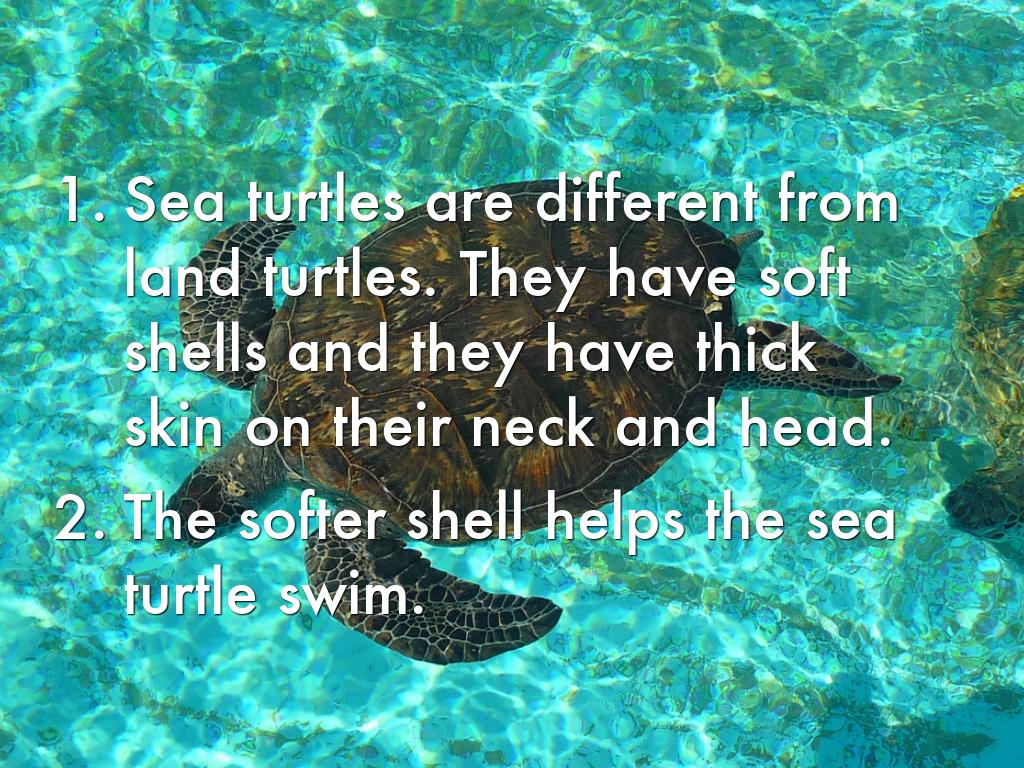Sea turtles are different from land turtles. They have soft shells and they have thick skin on their neck and head.