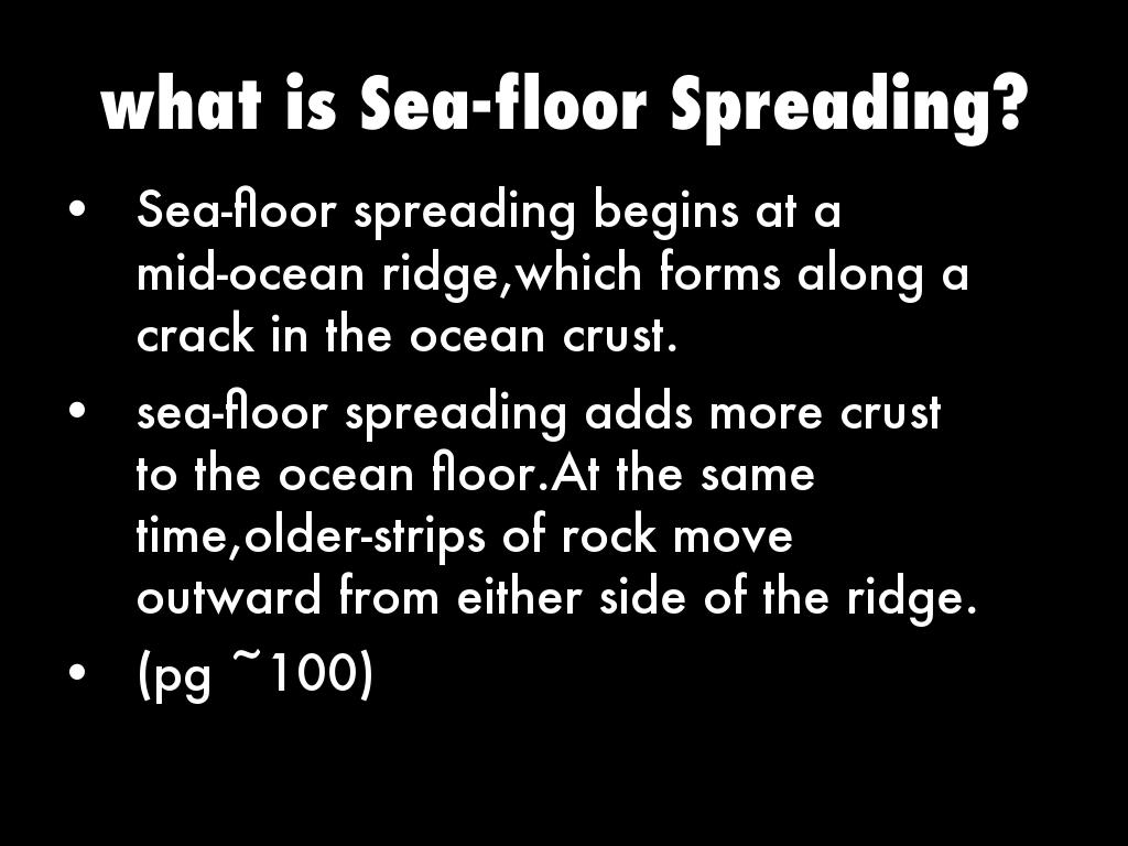 Sea-floor spreading begins at a mid-ocean ridge,which forms along a crack in the ocean crust.
