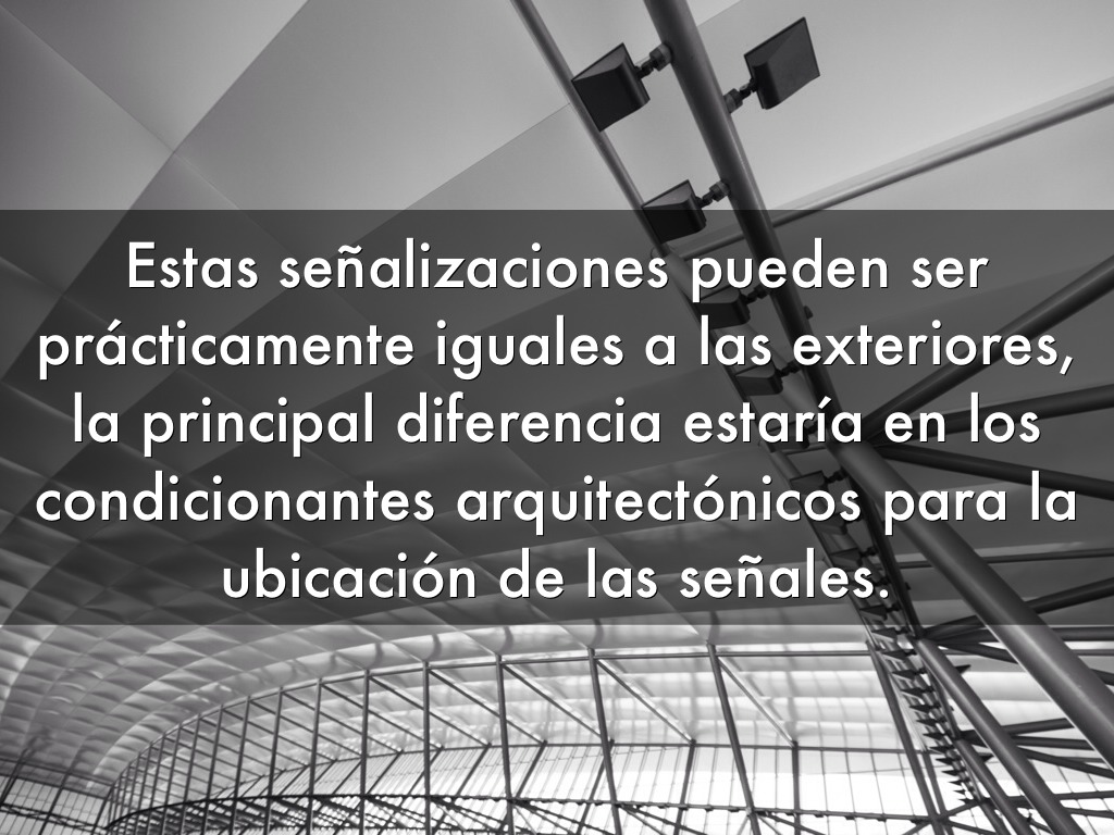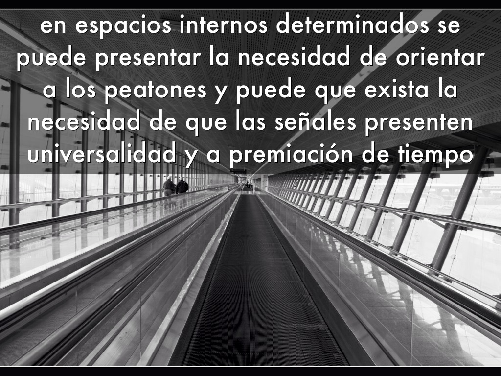 en espacios internos determinados se puede presentar la necesidad de orientar a los peatones y puede que exista la necesidad de que las señales presenten universalidad y a premiación de tiempo