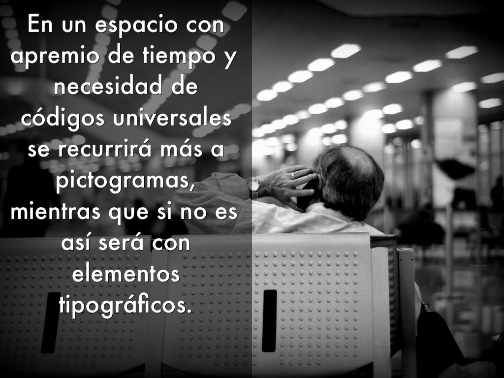 En un espacio con apremio de tiempo y necesidad de códigos universales se recurrirá más a pictogramas, mientras que si no es así será con elementos tipográficos.