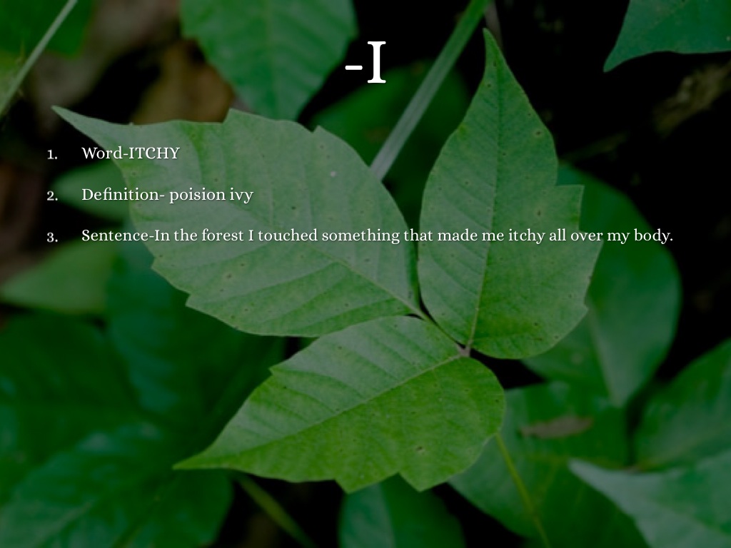 Sentence-In the forest I touched something that made me itchy all over my body.