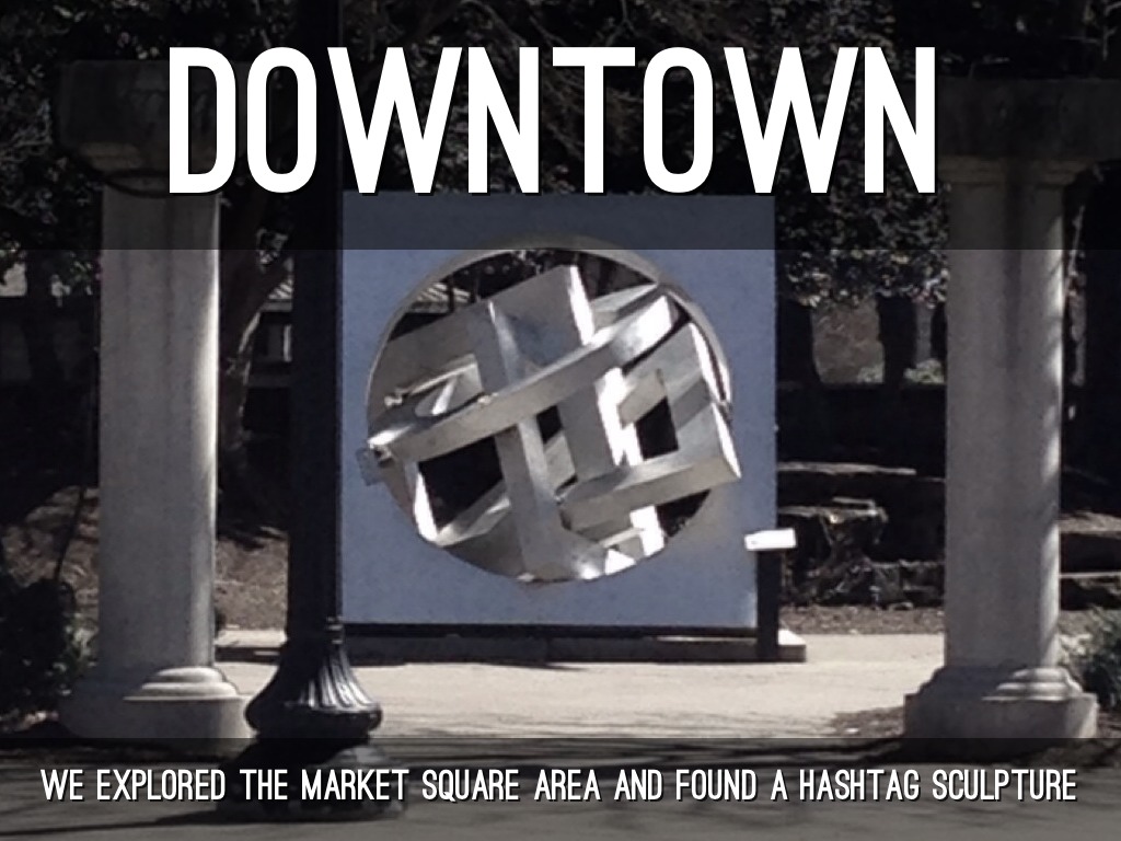 WE EXPLORED THE MARKET SQUARE AREA AND FOUND A HASHTAG SCULPTURE