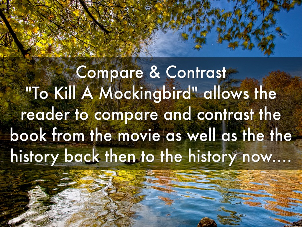 Compare & Contrast "To Kill A Mockingbird" allows the reader to compare and contrast the book from the movie as well as the the history back then to the history now.