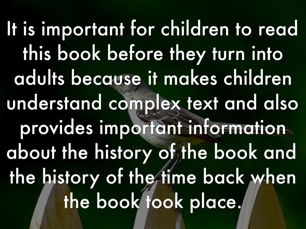 It is important for children to read this book before they turn into adults because it makes children understand complex text and also provides important information about the history of the book and the history of the time back when the book took place.