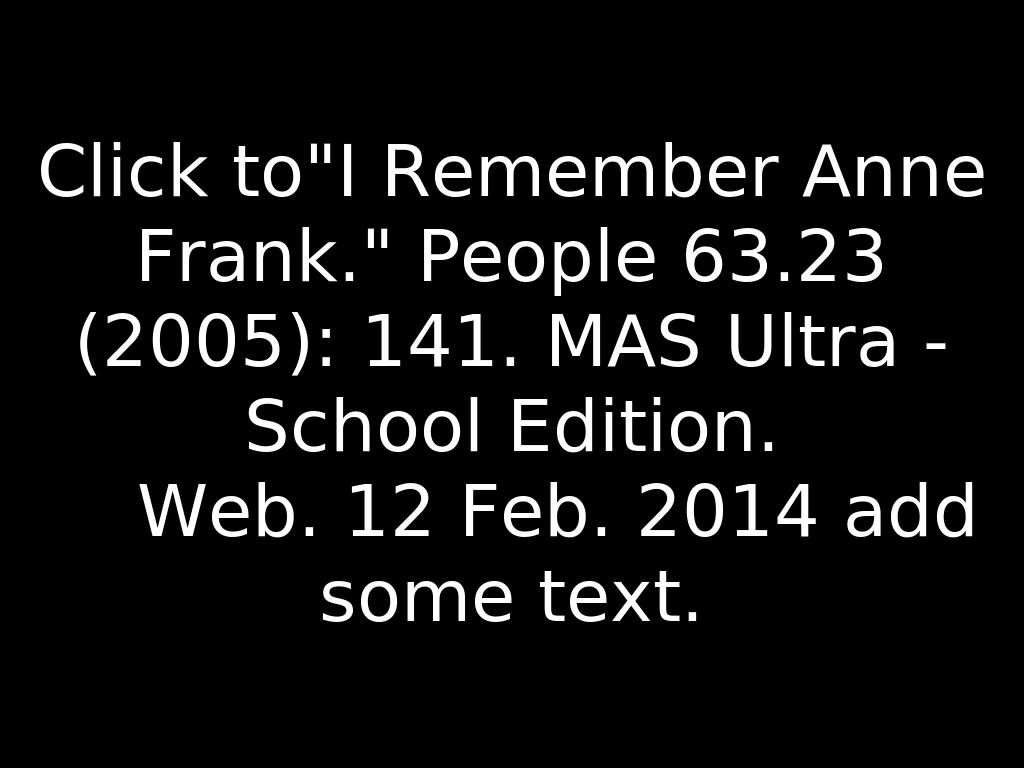 Click to"I Remember Anne Frank." People 63.23 (2005): 141. MAS Ultra - School Edition.