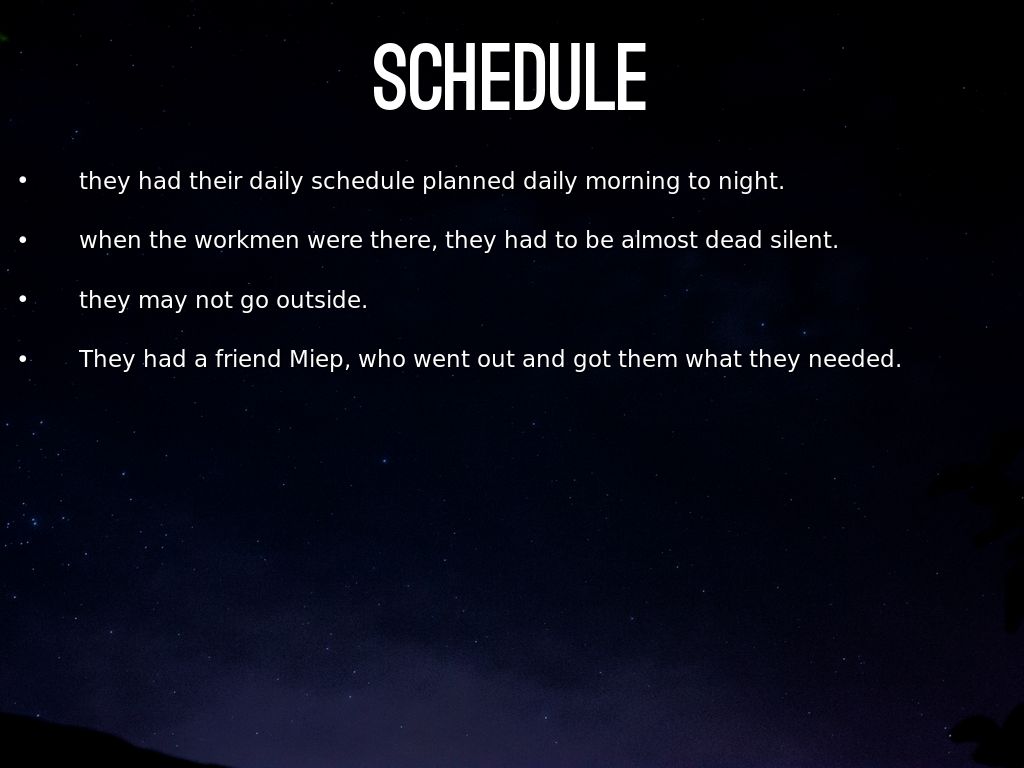 • They had a friend Miep, who went out and got them what they needed.