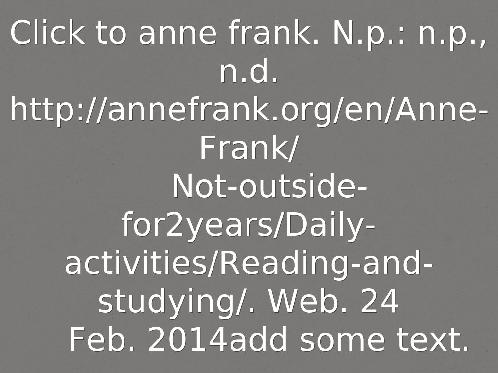 Click to anne frank. N.p.: n.p., n.d. http://annefrank.org/en/Anne-Frank/