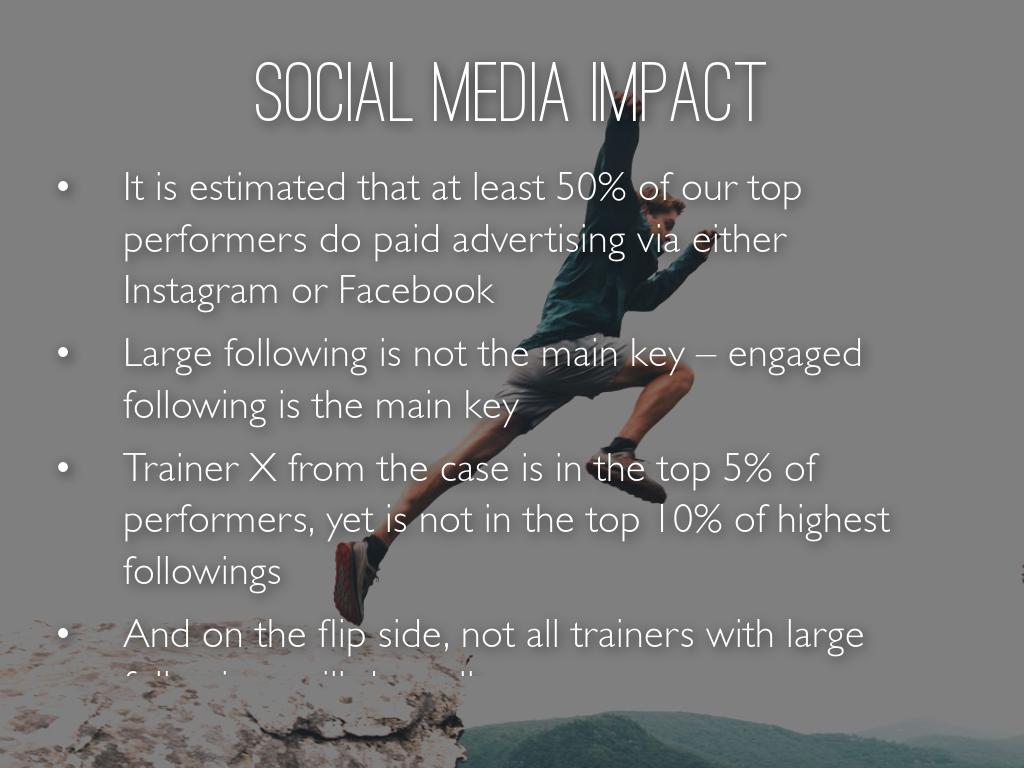 - Trainer X from the case is in the top 5% of performers, yet is not in the top 10% of highest followings