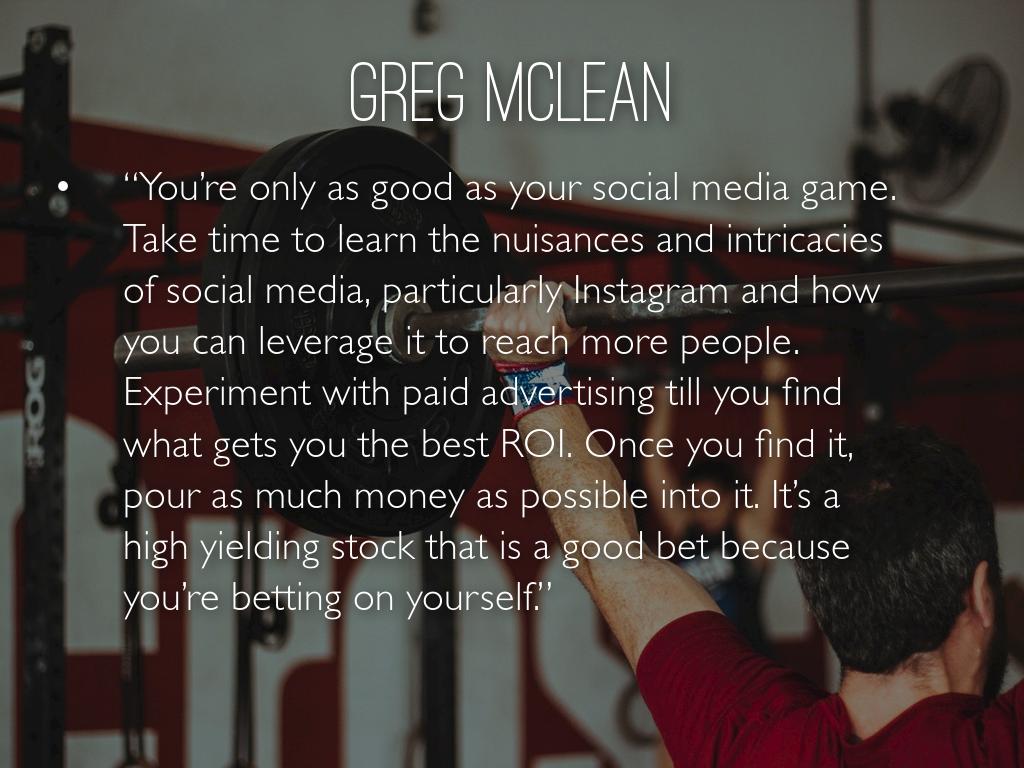 - “You’re only as good as your social media game. Take time to learn the nuisances and intricacies of social media, particularly Instagram and how you can leverage it to reach more people. Experiment with paid advertising till you find what gets you the best ROI. Once you find it, pour as much money as possible into it. It’s a high yielding stock that is a good bet because you’re betting on yourself.”