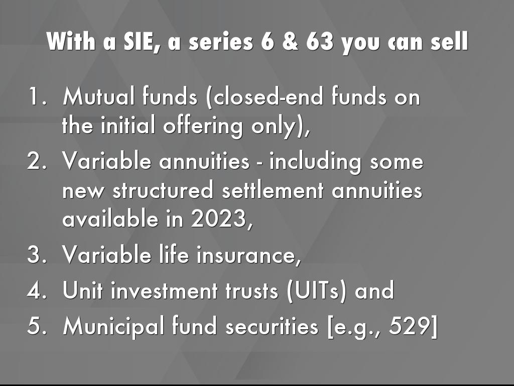 With a 6 you can almost sell variable structured settlement annuities, but you still need 1 more license.