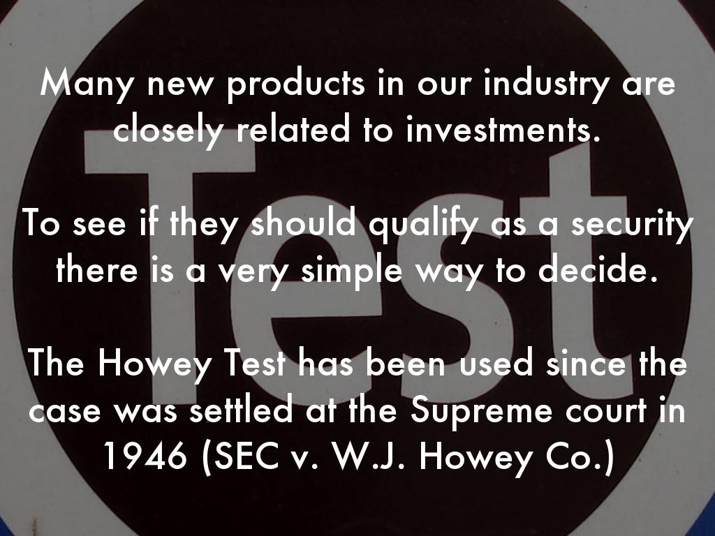 The Howey Test has been used since the case was settled at the Supreme court in 1946 (SEC v. W.J. Howey Co.)