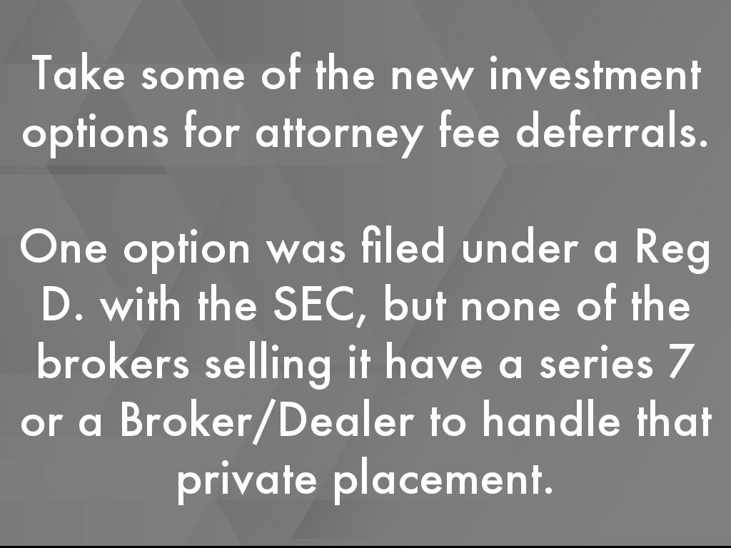 One option was filed under a Reg D. with the SEC, but none of the brokers selling it have a series 7 or a Broker/Dealer to handle that private placement.