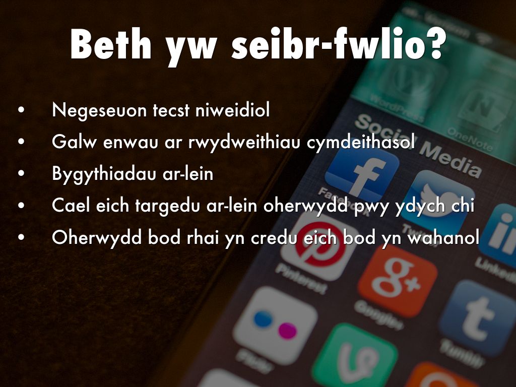 "Defnyddio’r rhyngrwyd neu ffonau symudol i gynhyrfu neu achosi embaras i rywun yn