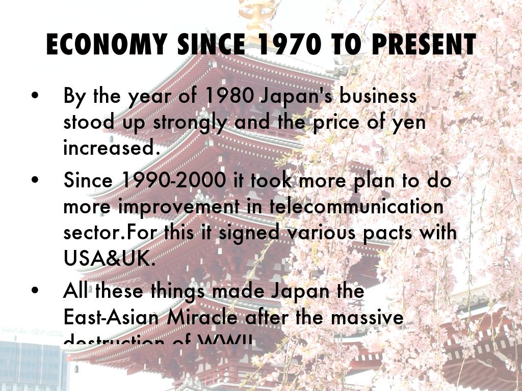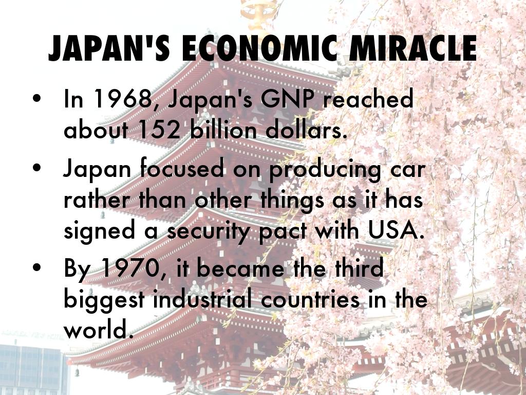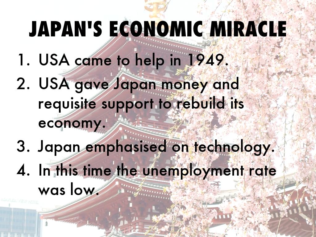 All these things made Japan the East-Asian Miracle after the massive destruction of WWII.