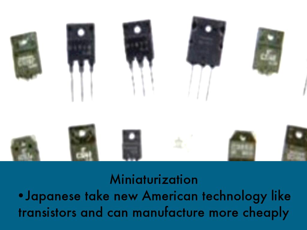 •Japanese take new American technology like transistors and can manufacture more cheaply