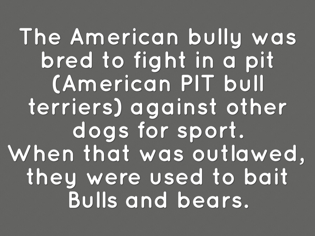 The American bully was bred to fight in a pit (American PIT bull terriers) against other dogs for sport.