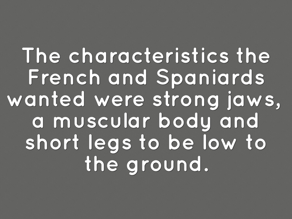 The characteristics the French and Spaniards wanted were strong jaws, a muscular body and short legs to be low to the ground.