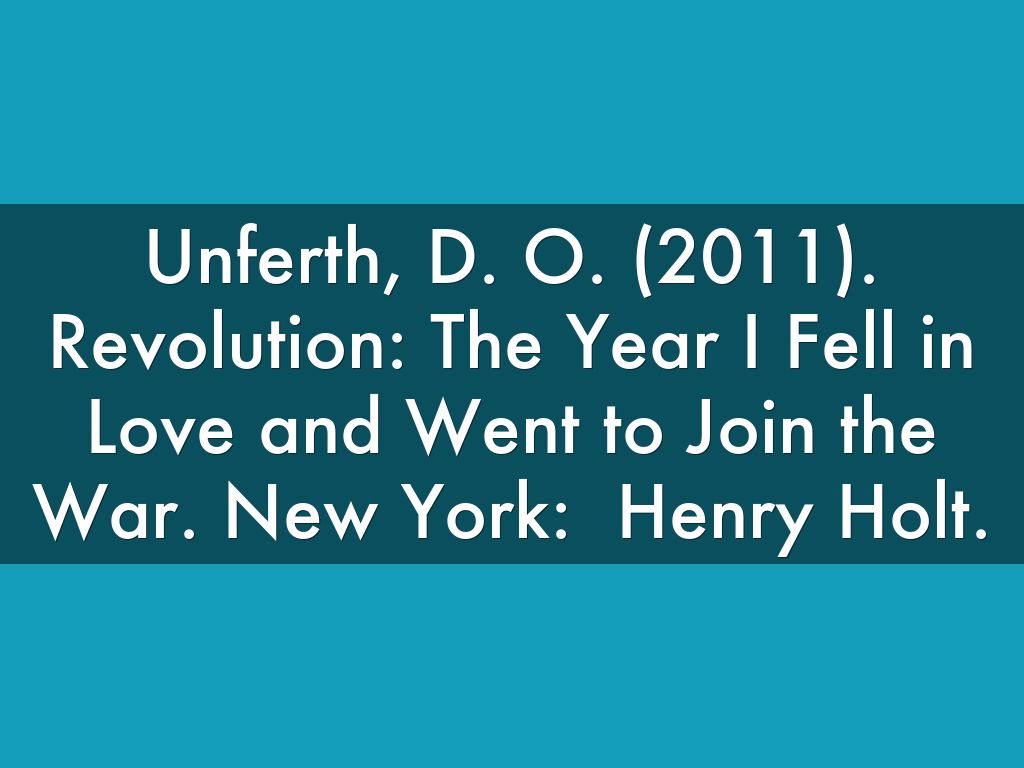 Unferth, D. O. (2011). Revolution: The Year I Fell in Love and Went to Join the War. New York: Henry Holt.