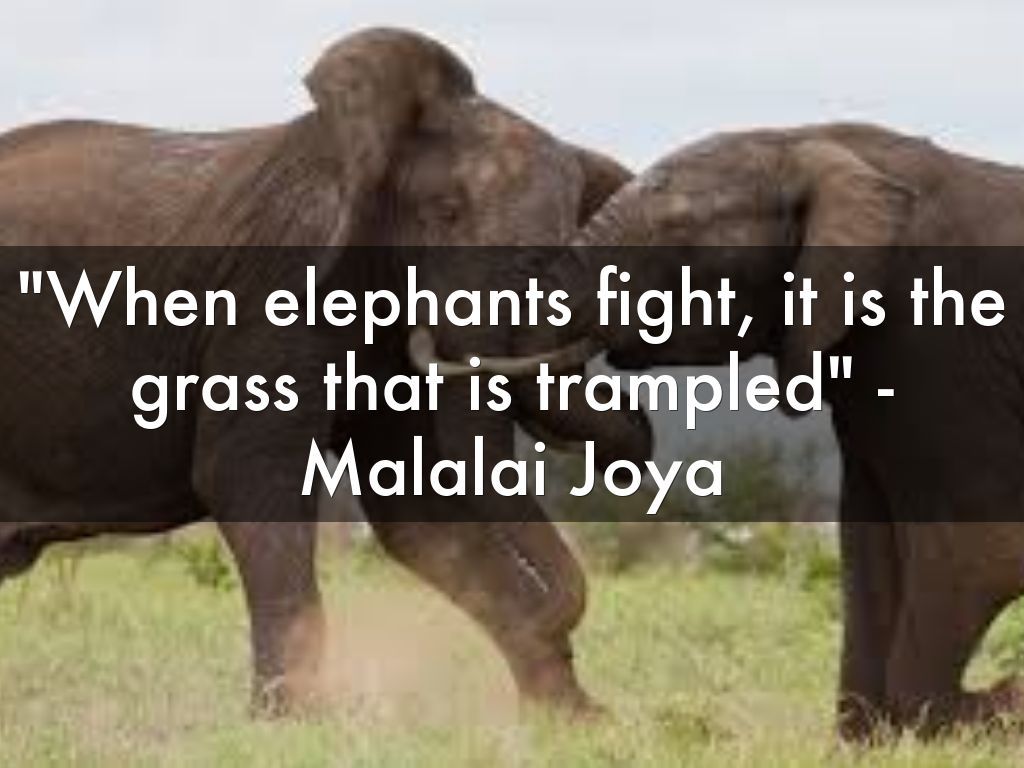 "When elephants fight, it is the grass that is trampled" -Malalai Joya