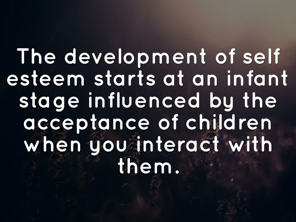 The development of self esteem starts at an infant stage influenced by the acceptance of children when you interact with them.